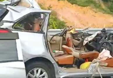 Kali ini mobil Honda Mobilio menambrak truk fuso dari belakang dengan kecepatan tinggi dari arah Dumai menuju Pekanbaru. Peristiwa tersebut terjadi di KM 27 tol Permai.